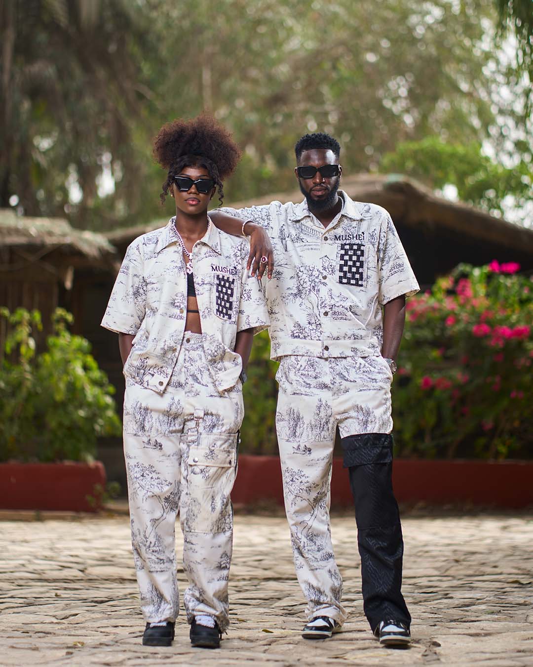 - Details : Drawing print on the shirt and pants, loose and relaxed cut
