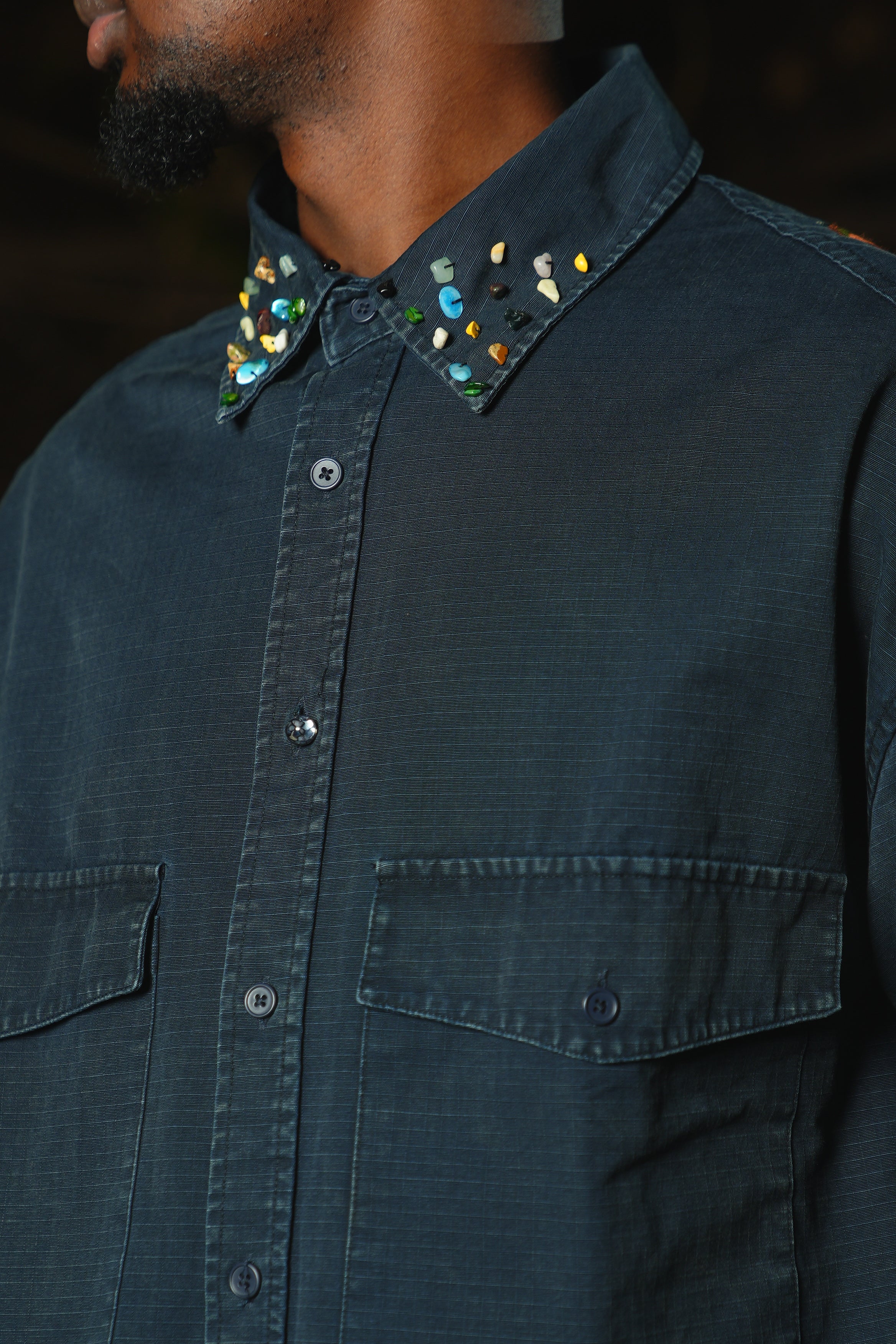 Chemise oversize d'exception combinant confort et raffinement artisanal.