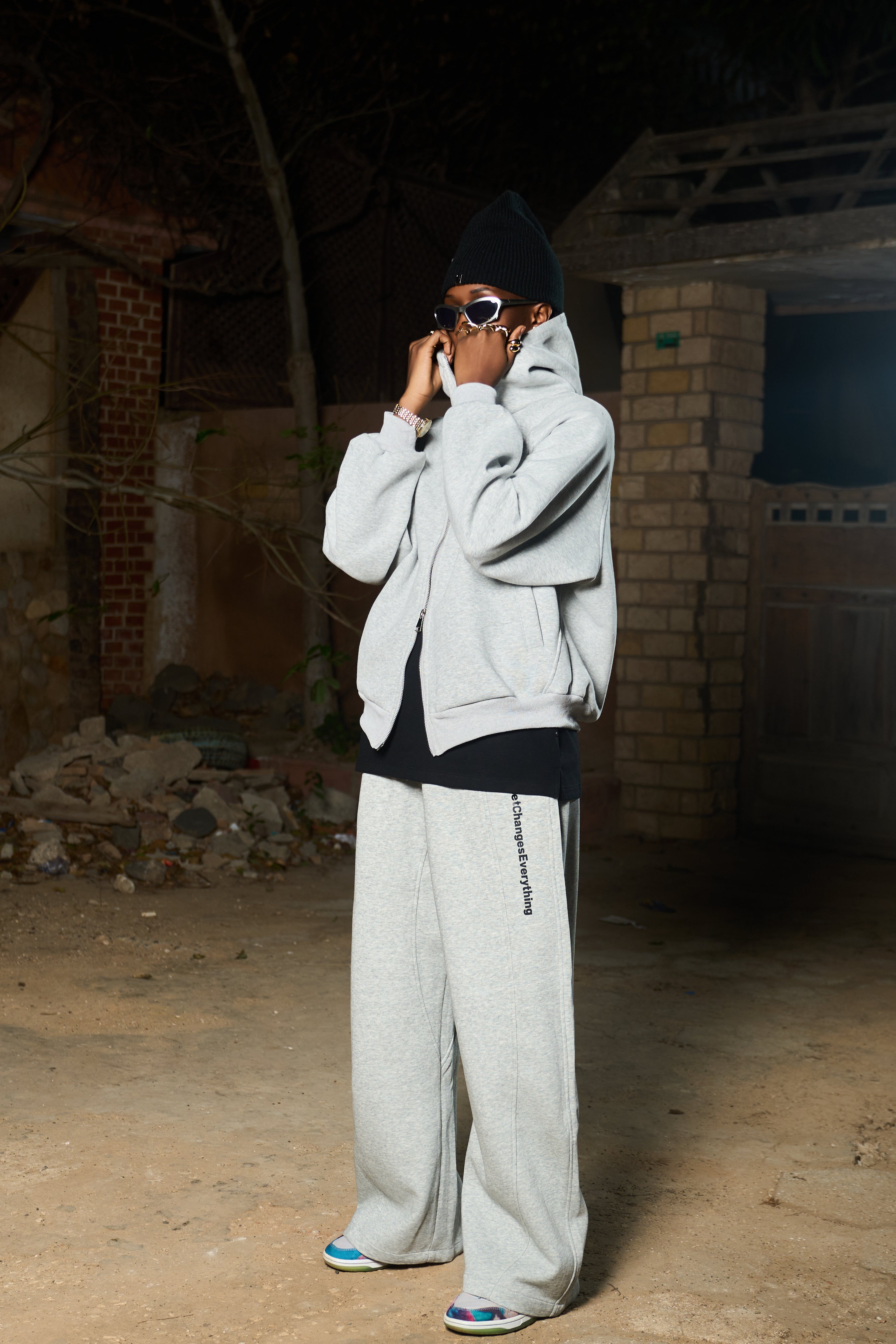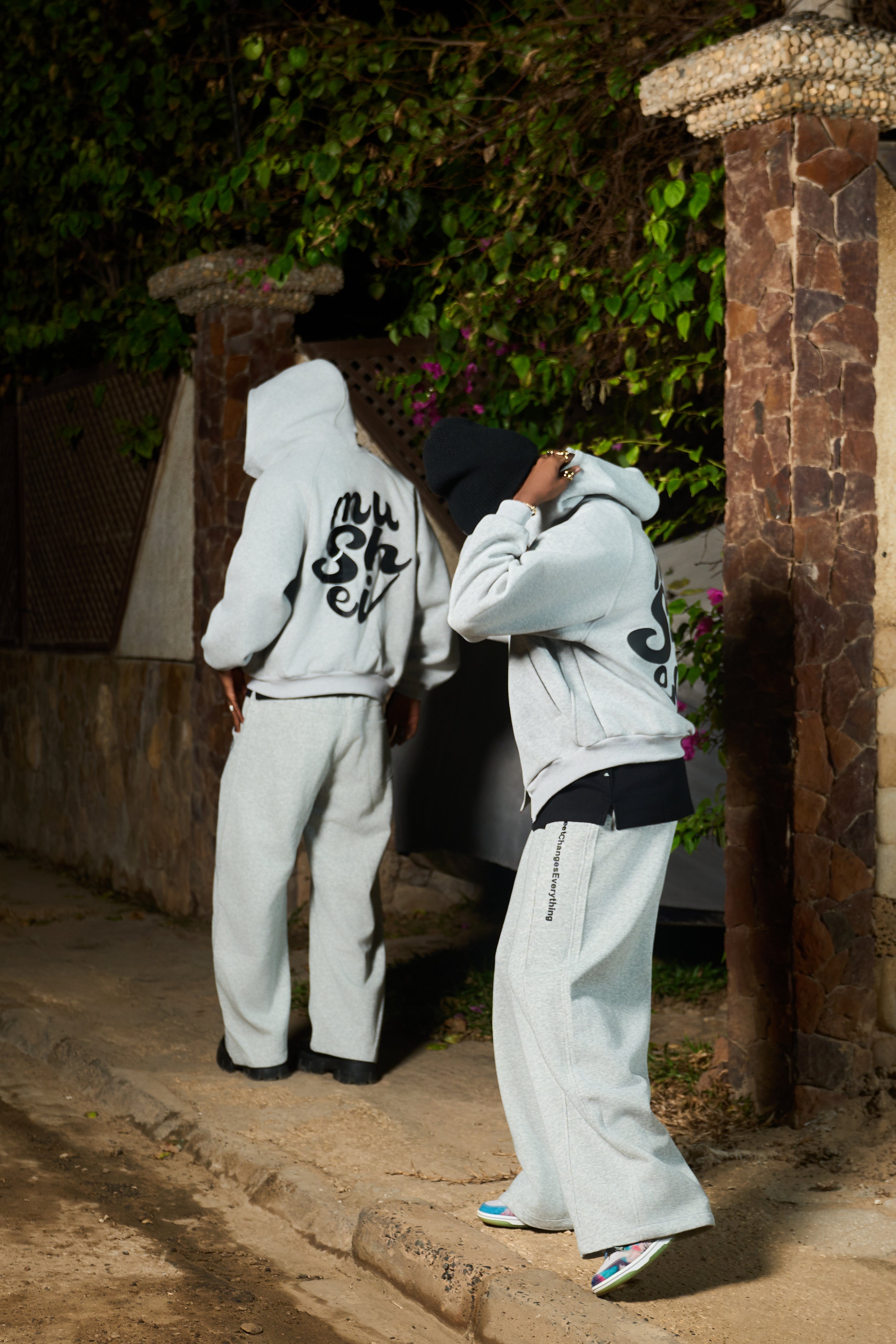 Ensemble premium Mushei réunissant un pull à capuche et un pantalon coordonné. Le pull se distingue par son logo Mushei apposé sur le dos et sa fermeture à double zip, offrant une flexibilité de port remarquable. Cette double fermeture permet d'ajuster facilement la ventilation et le confort selon vos besoins. Confectionné pour les amateurs de streetwear sophistiqué, cet ensemble marie fonctionnalité et esthétique urbaine. Une pièce polyvalente qui s'adapte à vos activités quotidiennes avec style et praticité.
